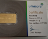 - UMICORE 2.5GM 999.9 GOLD BAR WITH CERTIFICATE IN SEALED PACK