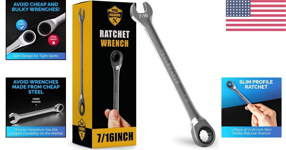 Unbreakable 7/16" Ratchet Wrench - Lightweight & Reliable Mechanic Tool