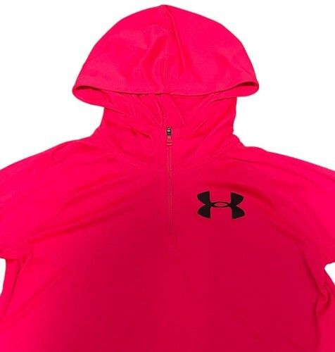 Under Armour Girls Hooded Athletic Shirt in size YXL . Bright hot pink with black logo. EXCELLENT CONDITION