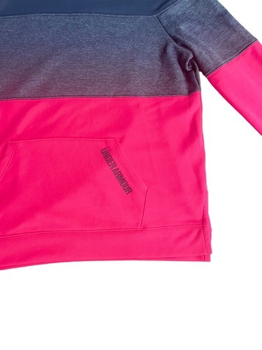 We are always willing to combine shipping when you purchase multiple items. Please feel free to reach out with any questions. This Under Armour girls' sweatshirt in size XL is perfect for colder weather. Made of high-quality materials and designed with comfort in mind, this pullover sweatshirt is ideal for any young girl who wants to stay cozy and stylish at the same time. The multicolor design adds a fun and playful touch to any outfit, making it a versatile addition to any wardrobe. BRIGHT neon pink with gray accents. With its coldgear technology, this sweatshirt is sure to keep your little one warm and comfortable, whether she's playing outside or just lounging at home. The sweatshirt is pre-owned and has been well-maintained, ensuring that it will last for years to come.