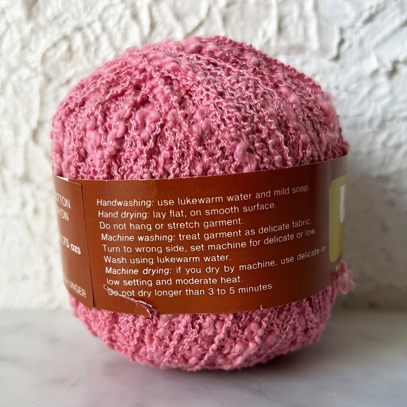 Unger Riccione Nubby Cotton/Rayon Yarn - 1 Skein Color Pink #319 Made in Italy