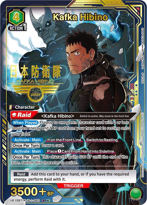 A special feature we?re including at low pull-rate is a gold foil SR??? Kaiju No.8 card that has a serial number printed on it! Each will be the only one with that serial number in the world making it a strong ?chase card?!