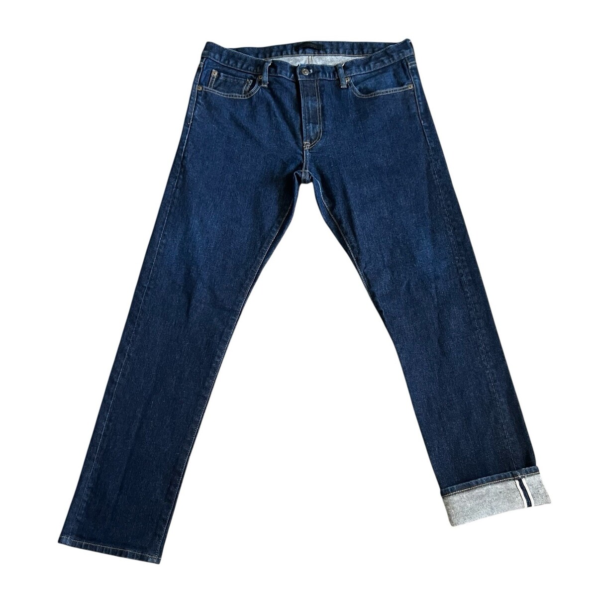 Uniqlo Men?s Kaihara Selvedge Japanese Denim Jeans Sz 36x32 Blue Slim Straight Good used condition, normal light wear , no rips or stains. Please use zoom function to see complete details *A*