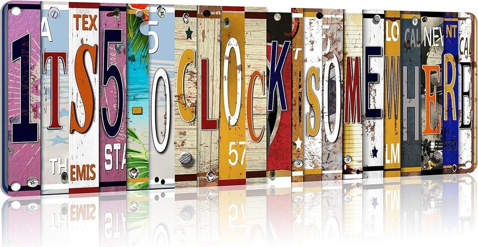 Unique 5 O'Clock Somewhere Vintage Bar Sign - Durable Metal Wall Art, 16x6