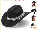- Unique Adjustable Black Glitter Western Hat with Rhinestone Trim for Ladies