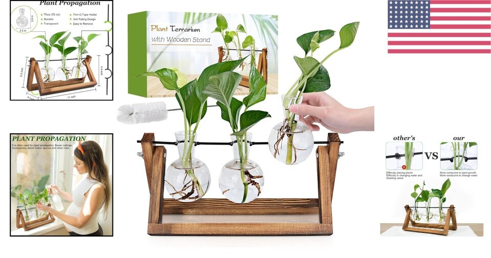 Versatile Plant Propagation Station: Ideal for showcasing fresh or artificial flowers, mixed bouquets, or popular live plants like Scindapsus, Pothos vine, and African Violets. Observe and appreciate the beauty of plant growth firsthand.