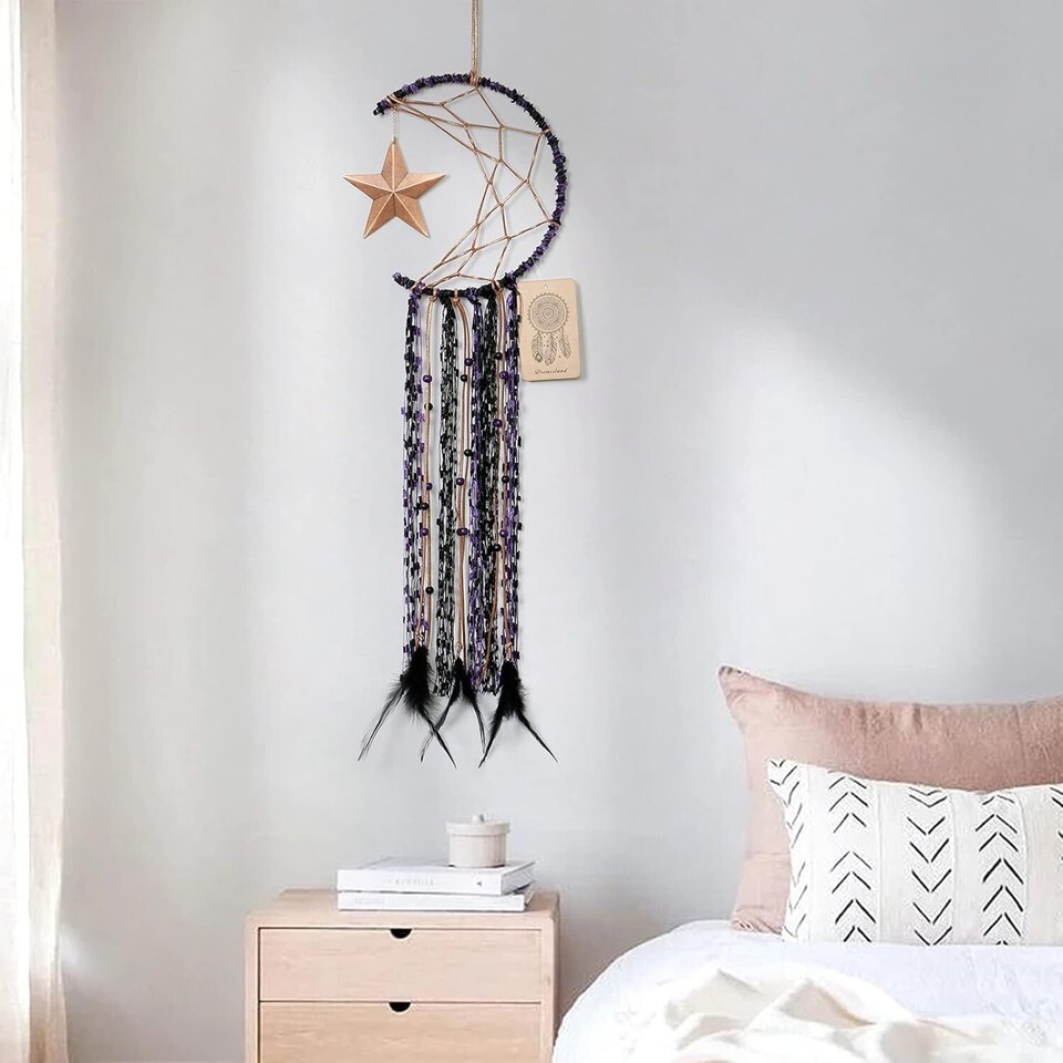 This Unique Handmade Half Circle Moon Dream Catcher is more than just decor; it is a transformative piece that brings warmth and positivity into your home. Its charming design makes it a perfect addition to any room, combining style and tradition seamlessly.