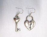- UNIQUE HEART LOVE LOCKET & HEART TOPPER KEY CHARM USA PEWTER FASHION EARRINGS