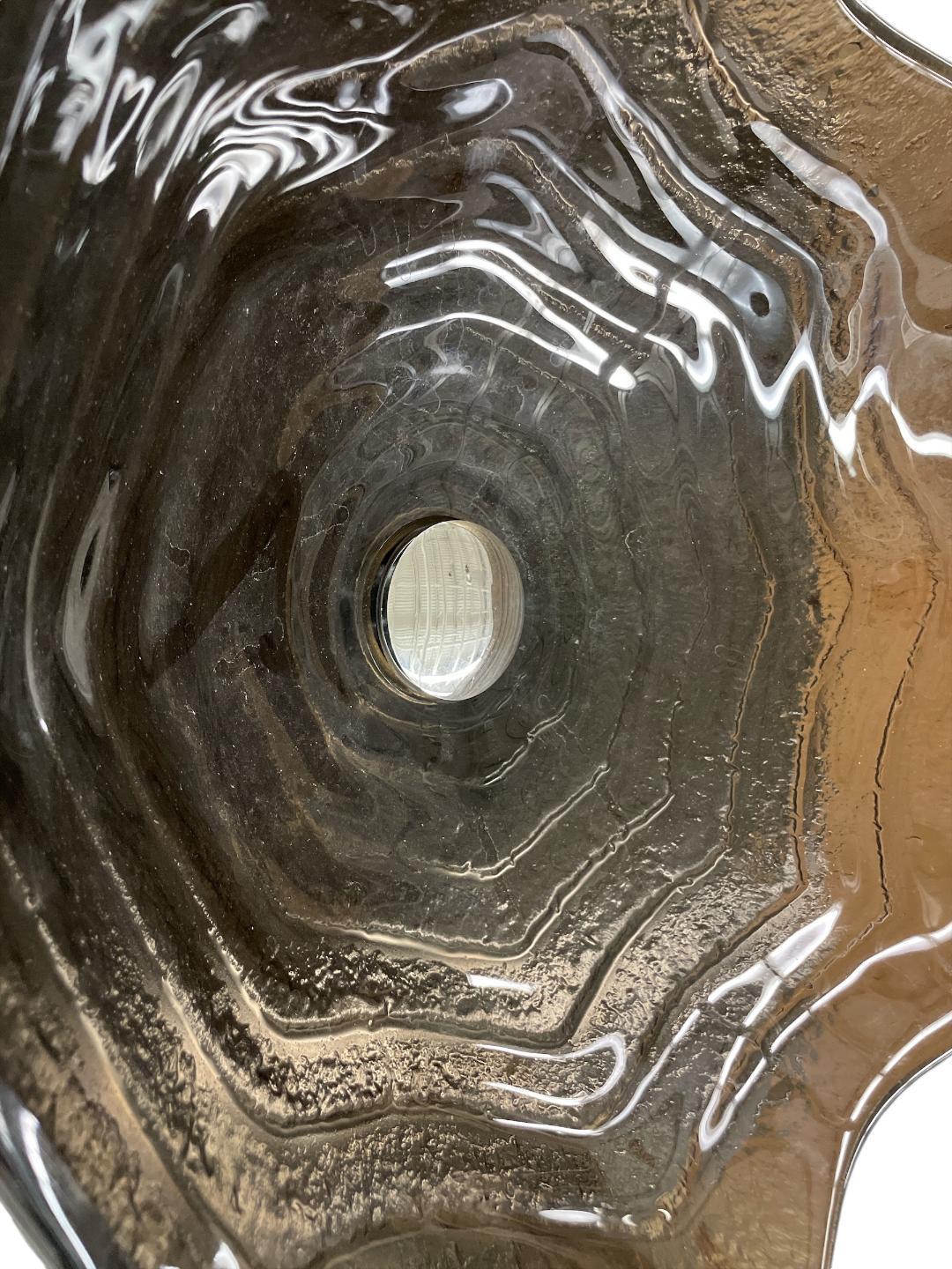 Unique Modern Dark Brown Tempered Glass Vessel Sink Round Bowl Wave pattern Abov