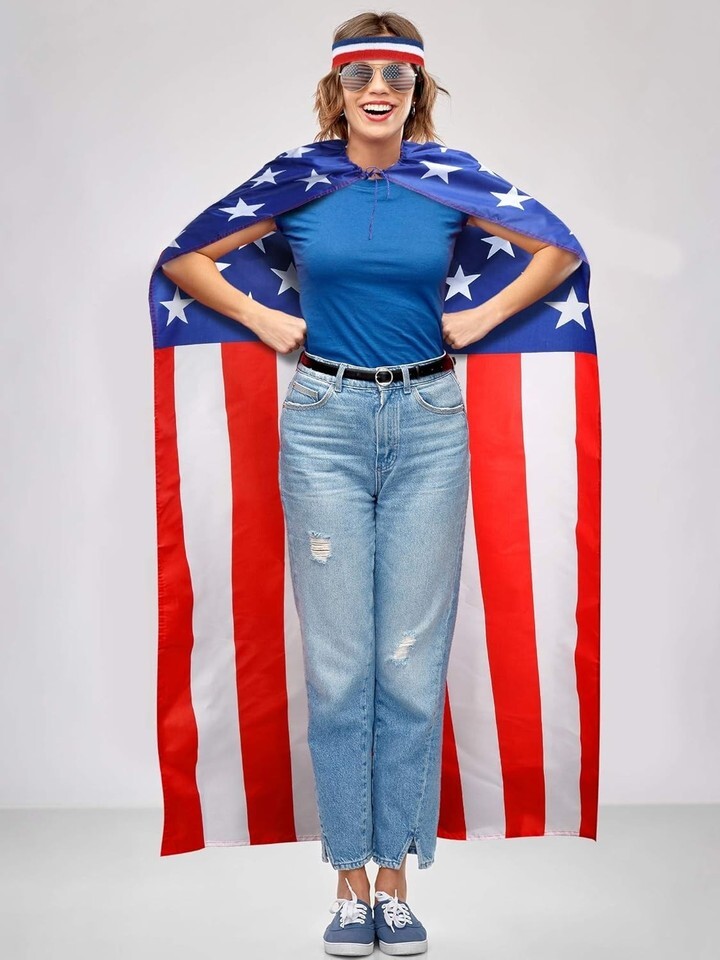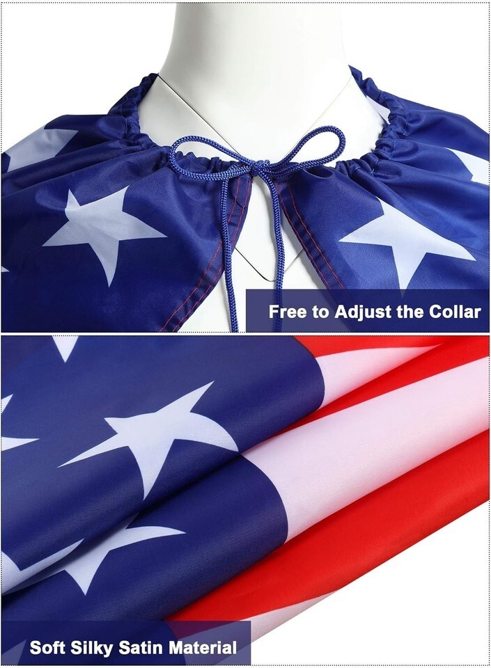 Unisex American Flag Costume Cape Set - Lightweight & Colorful for 4th of July