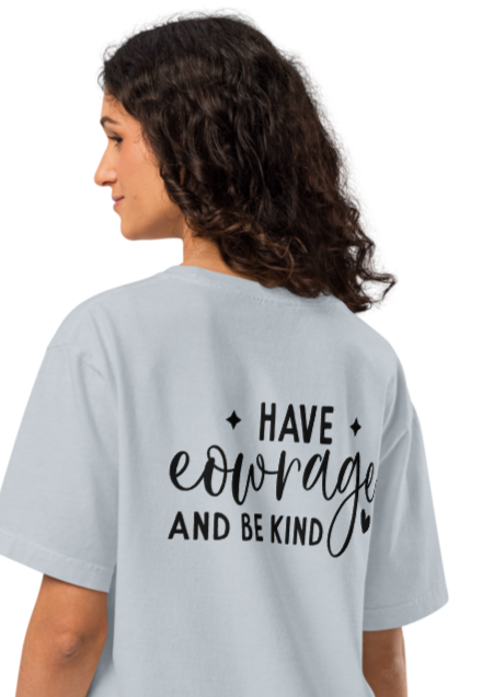 - Unisex Oversized T-Shirt - Kind Back Print Light Washed Denim