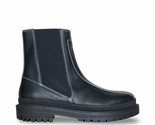 - Unisex black boots vegan leather chelsea pull on casual office flats ridged sole