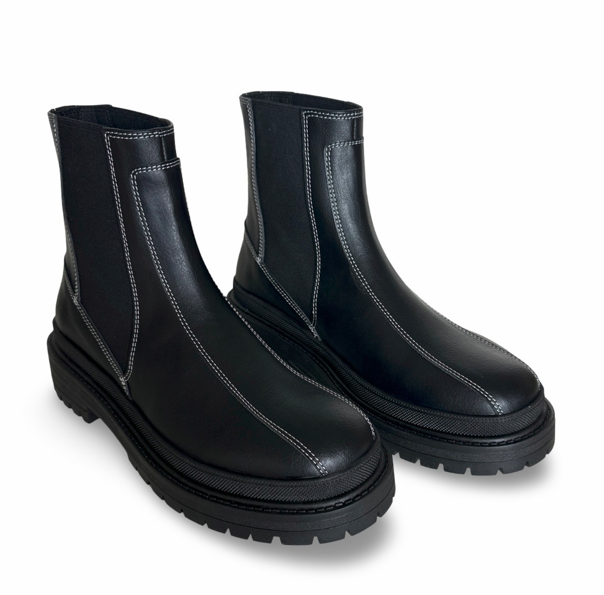 Unisex black boots vegan leather chelsea pull on casual office flats ridged sole