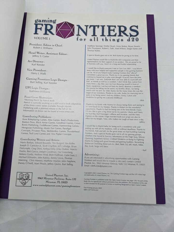 United Playtest Gaming Frontiers Magazine Volume 1 All Things Dnd. Combined Shipping (for USA Customers Only)
