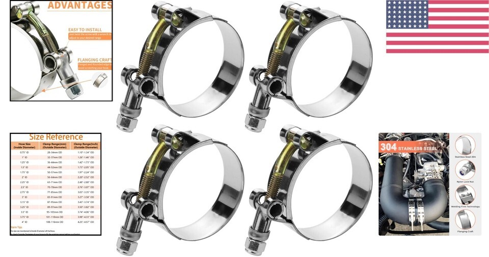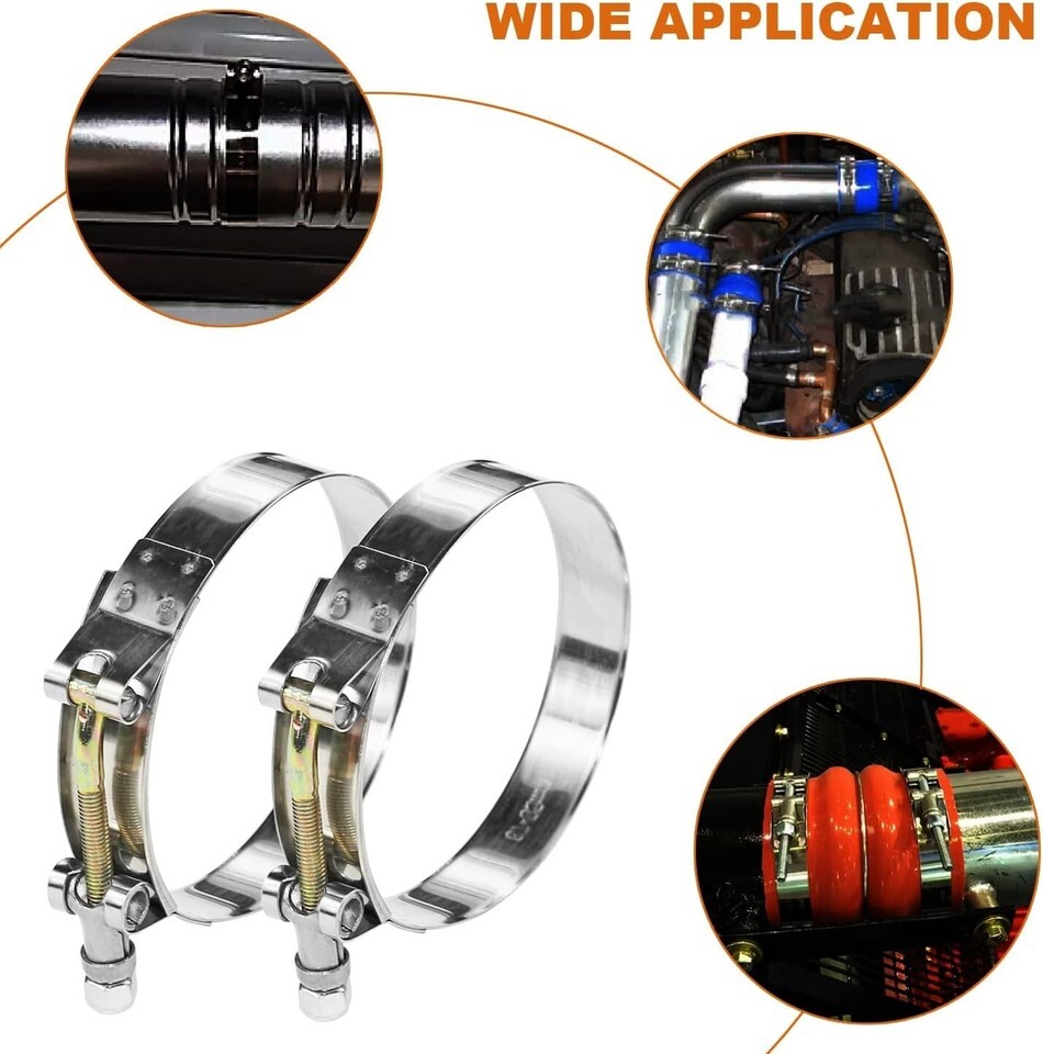 - Universal 1" T-Bolt Hose Clamps, Corrosion-Resistant 304 Steel for 32-37mm Hoses