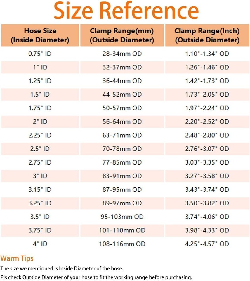 Clamp size specifically designed for a work range of 32-37mm hose OD, fitting 1 inch hose ID.