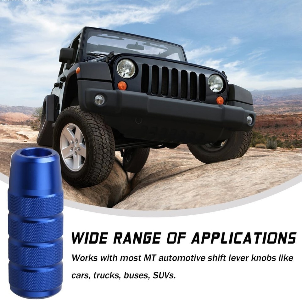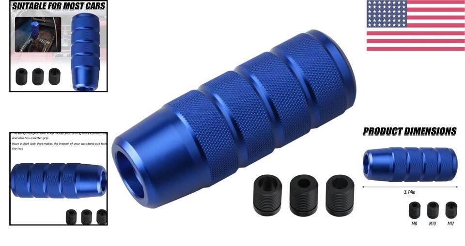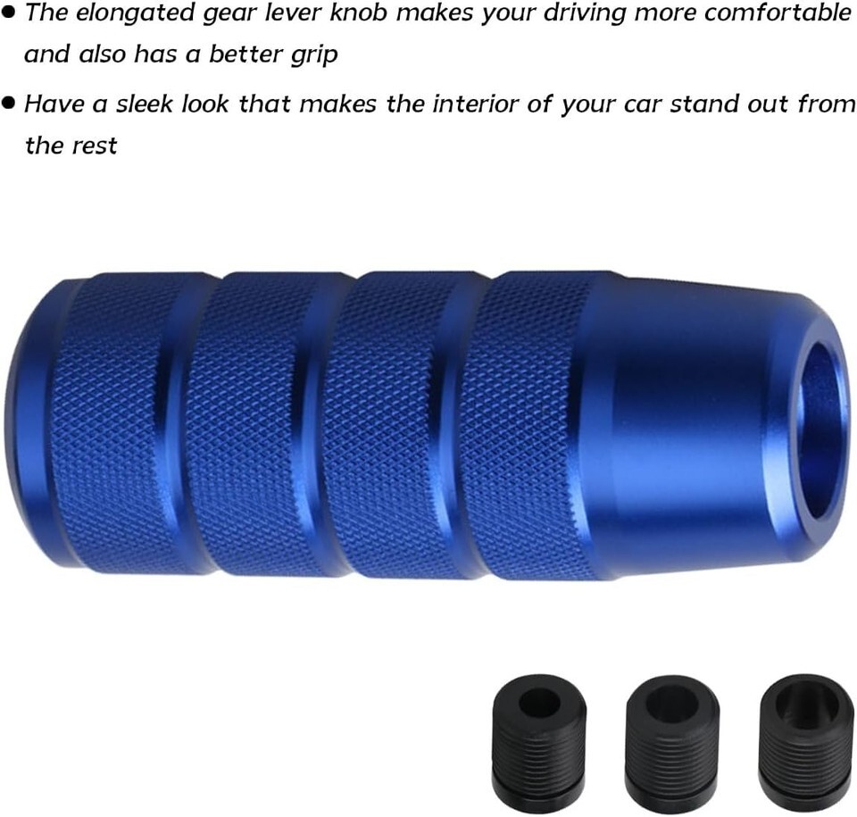 - Universal 3.74” Blue Aluminum Gear Shift Knob with Rustproof Finish & Adapters