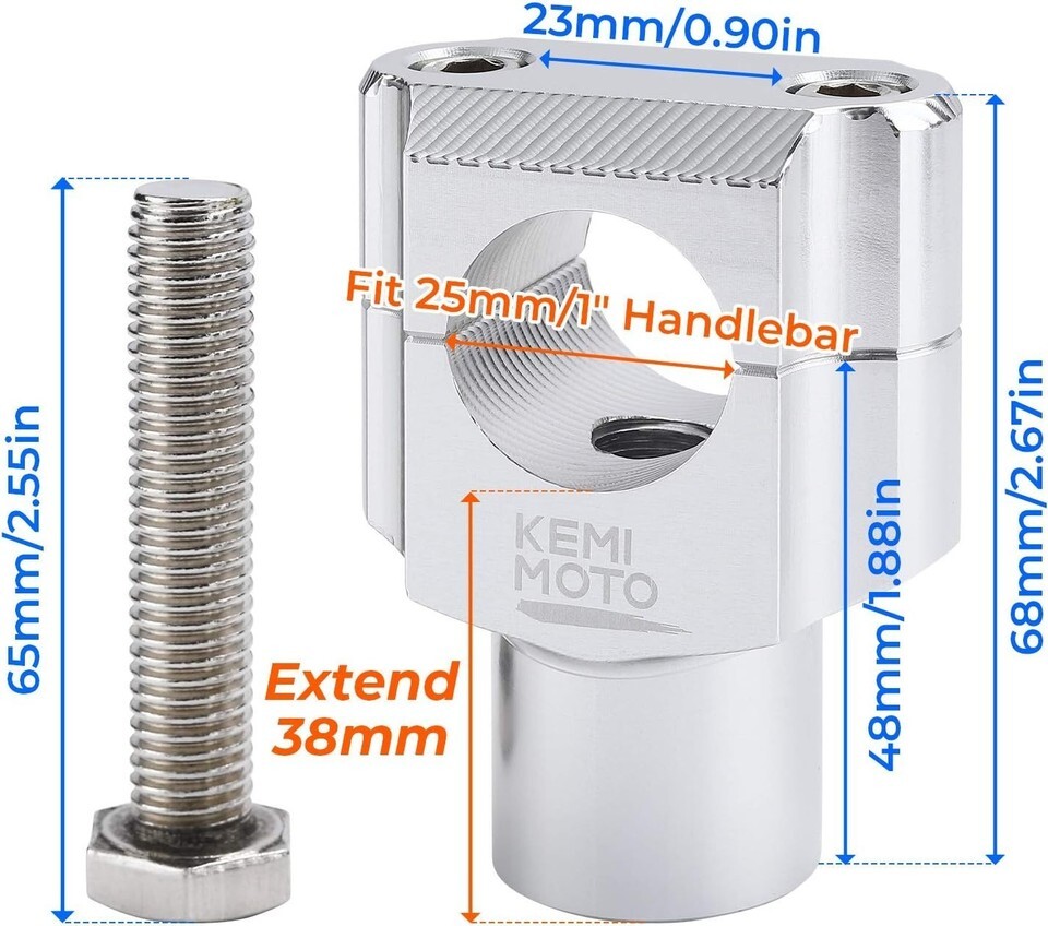 Items Included: Clamp,handlebar riser mount clamps,M12 bolts,allen wrench