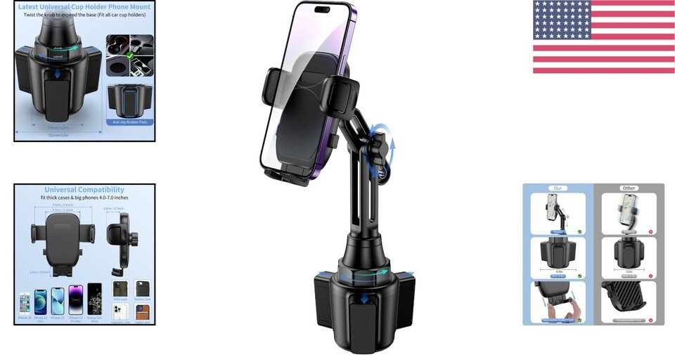 - Universal Cup Phone Holder for Car with Adjustable Neck - Sturdy & Secure Fit