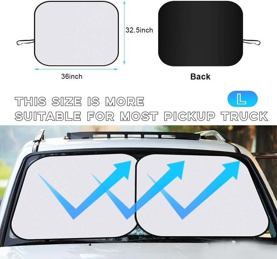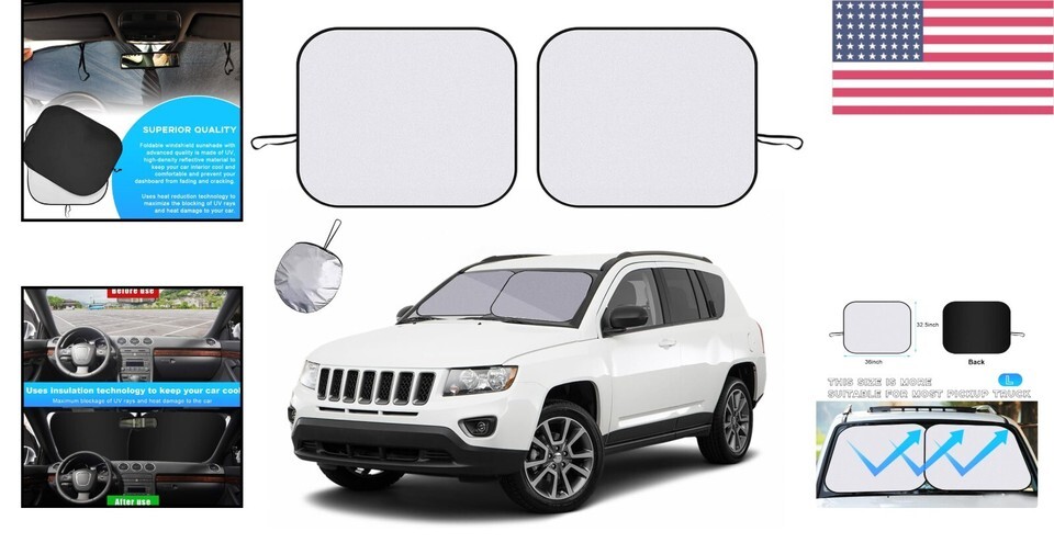 Features: Foldable,Reflect UV Sun and Heat,Thoughtful Design,Easy to Install Remove,Excellent double shade design,Reflective technology,Maximum coverage,Effective UV protection,Isolates heat transfer,Reduces temperature inside car,Two-piece design,Provides a cool driving environment