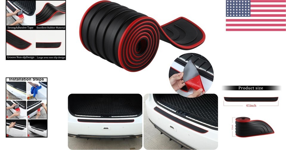 Universal Fit Car Rear Bumper Protector, 41?x3.5? Durable Rubber Accessory
