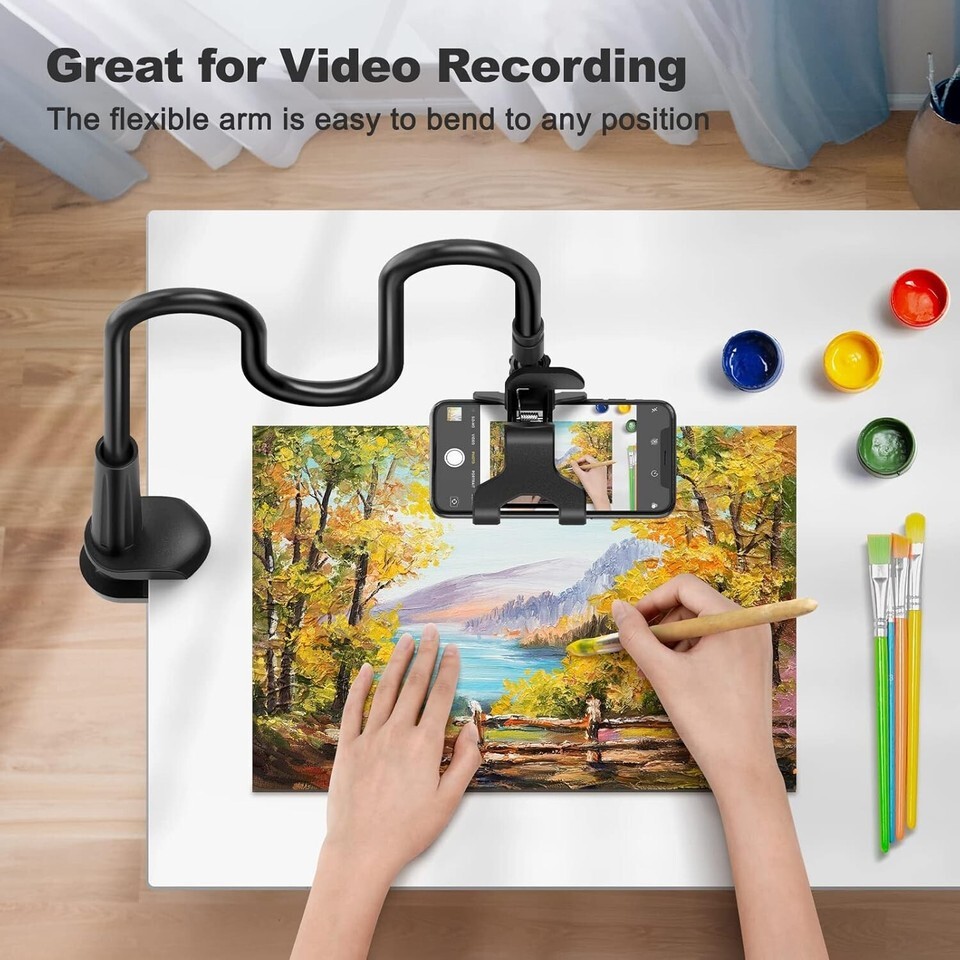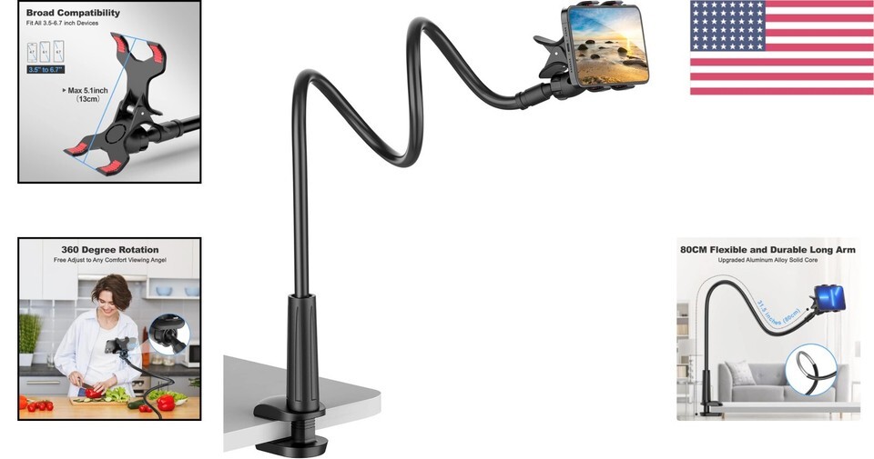 - Universal Gooseneck Phone Holder with 360° Rotation for Hands-Free Viewing