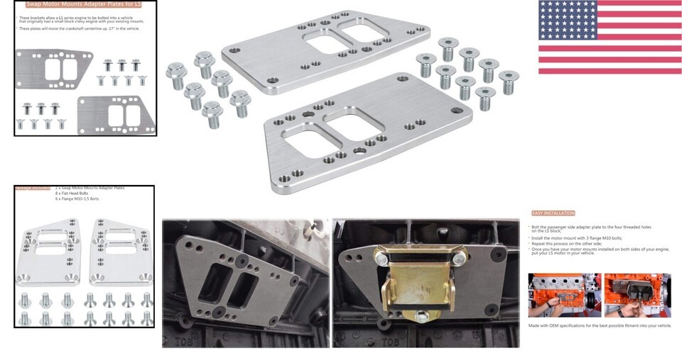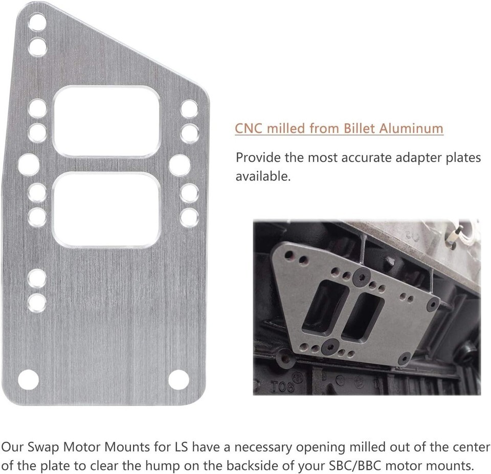- Universal LS Swap Motor Mounts Adapter Plates - Billet Aluminum for SBC Vehicles