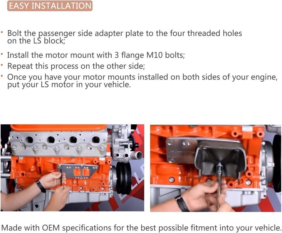 Do not compromise on performance or compatibility. Our Universal LS Swap Motor Mounts Adapter Plates are a game changer, crafted with precision to ensure effortless integration of the LS engine into your vehicle, retaining the integrity of your original setup while enhancing power and reliability.