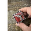 The "Unknown Small Pistol Gun Pin" is a unique and potentially rare collectible pinback. The design of a small pistol gun adds a controversial and edgy element to the pin, making it a standout piece for collectors interested in unusual and eclectic items. With its compact size, this pin would be a versatile accessory to add to a collection of pinbacks or a unique addition to a pin collection focusing on other collectible pinbacks.