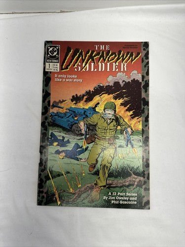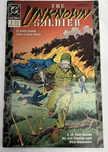 This is the first issue of the 1988 series of Unknown Soldier comic book by DC Comics. It features a single unit of sale, and is part of the DC Universe, with the main character being unknown. The issue number is #1 and it belongs to the Copper Age (1984-1992) era. The comic book is in near mint minus condition, and has been boarded for preservation.