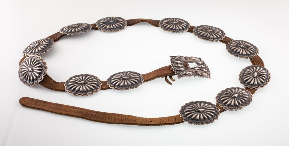Primary image for Unsigned Silver Concho Belt w/ 12 silver Sunburst Elements Nice Patina