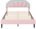 - Upholstered LED Bed Frame with Adjustable Flower Headboard and Metal Support Fee