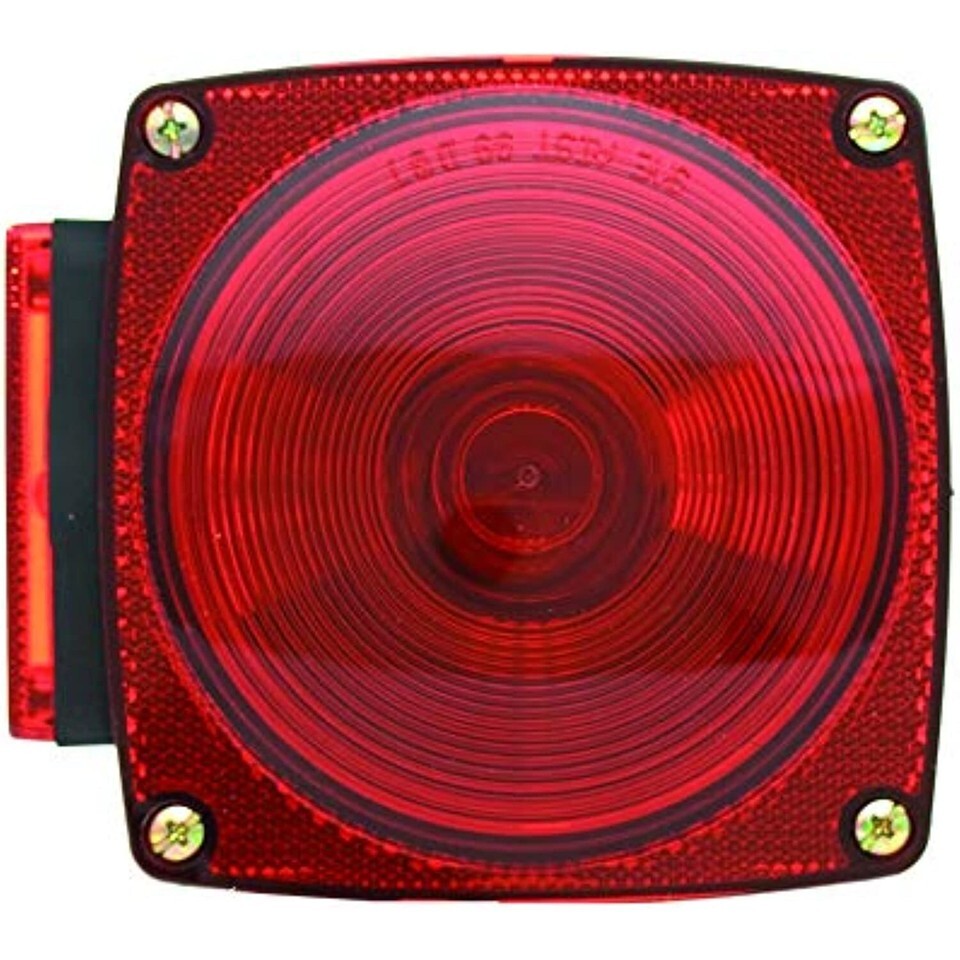 Uriah Products UL440001 is a red stop/tail/turn/signal light for trailers under 80" long. This 4-1/2" square light features an incandescent bulb and does not include license illumination, making it perfect for the right side of your trailer. This light is stud-mounted, with the bolts 2" apart. It meets all applicable SAE standards and meets or exceeds all DOT standards.