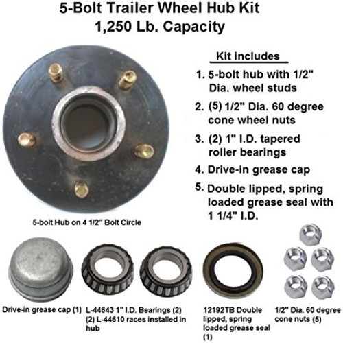 Uriah Products UW000154 Replacement Trailer Hub Kit for BT8 Spindles (5 Bolt on 4-1/2" Circle) ? 1" Inner Dia. Bearings
