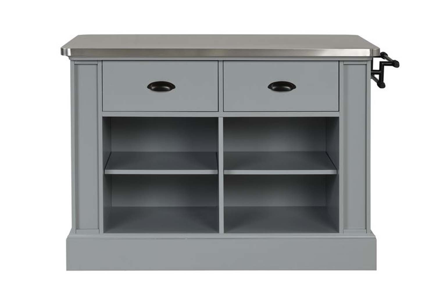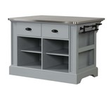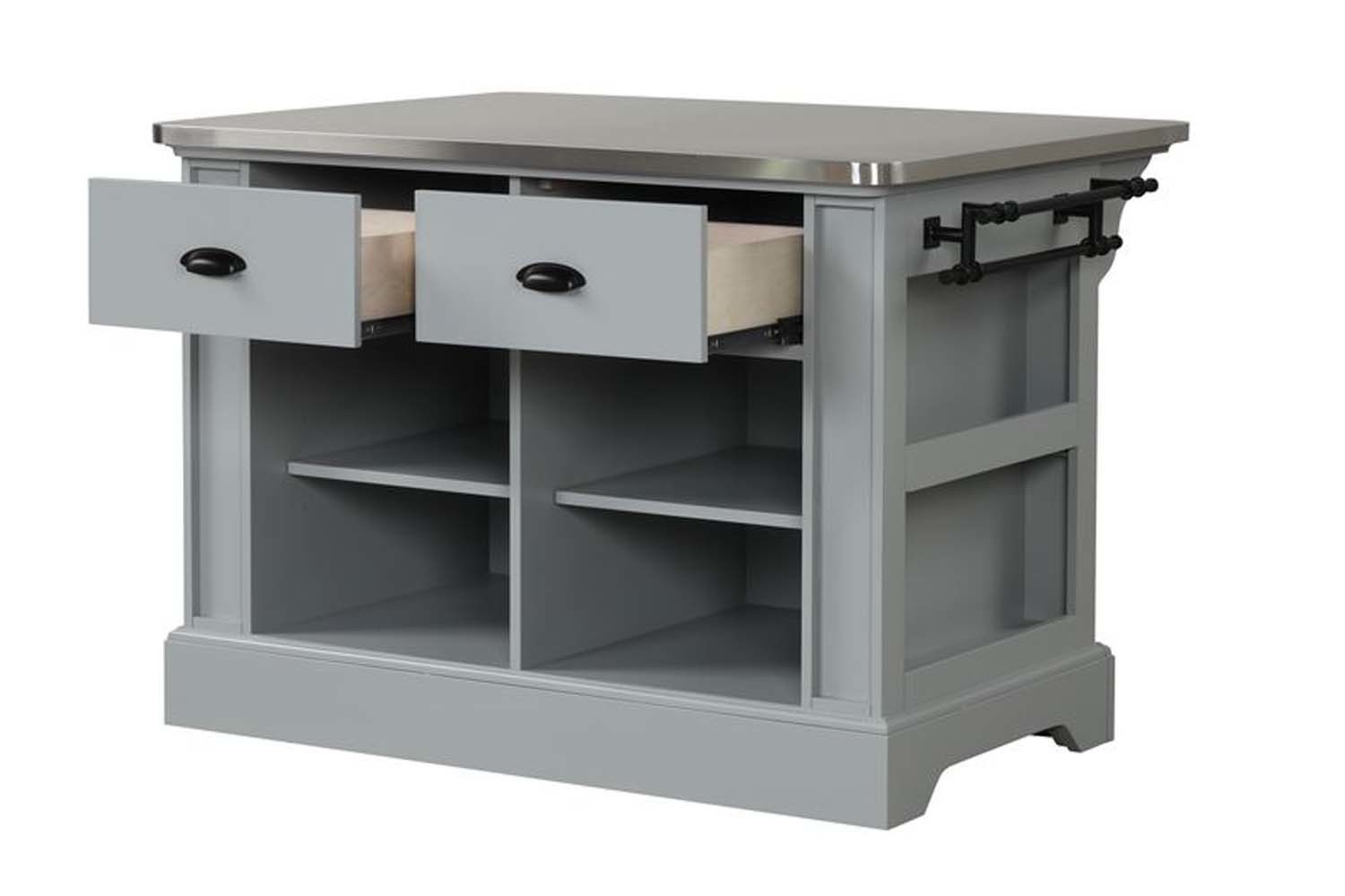 Features: Rectangular Kitchen Island Storage: 3 Drawers 2 Doors Storage Stainless Steel Top 2 Rods Included Table Top Thickness: 50mm Set Includes: One (1) Kitchen Island