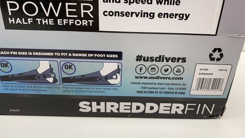 US DIVERS SHREDDER FIN - Compact for Travel - Size Adult LG Men 10-13 Wm 11-14. Condition is "New with box". Shipped with FedEx Ground or FedEx Home Delivery.