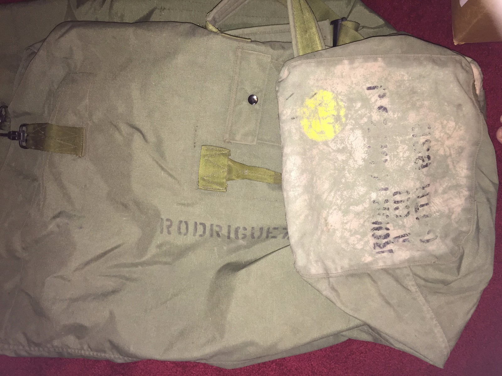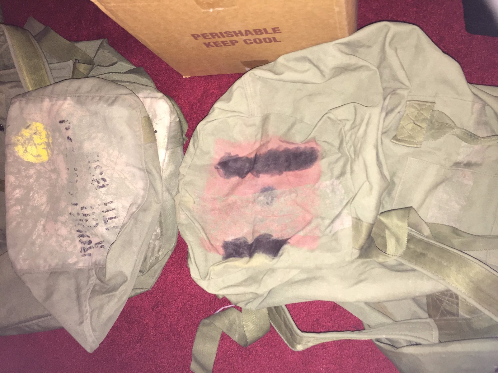 ALL BAGS HAVE BEEN INSPECTED FOR UNSERVICABLE DEFECTS AS LARGE HOLES MISSING STRAPS EYELETS ECT. THESE MAY HAVE PAINT NAMES OR UNITS WRITTEN ON THEM BUT THEY ARE SPECTION AND SERVICE READY