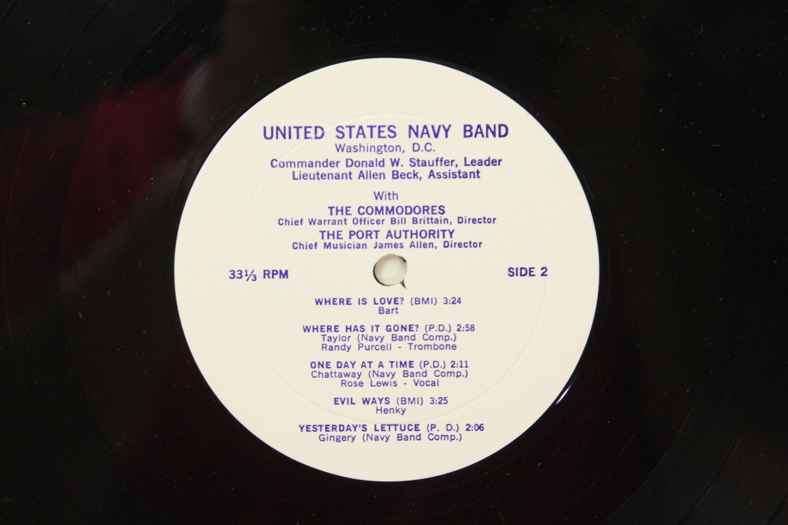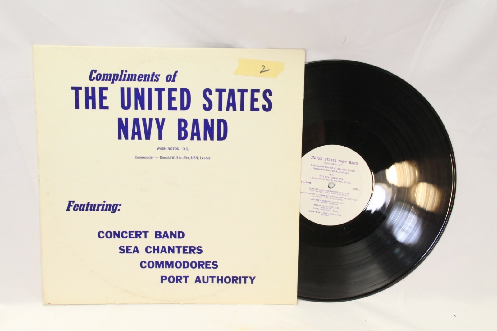 US Navy Band LP Vinyl COMPLIMENTS OF THE UNITED STATES NAVY BAND Adorations: Fanfare Variations on a Theme by Tchaikovsky Anchors Aweigh Movin' on Both Sides Now Where Is Love? Where Has It Gone? One Day at a Time Evil Ways Yesterday's Lettuce 620ES1
