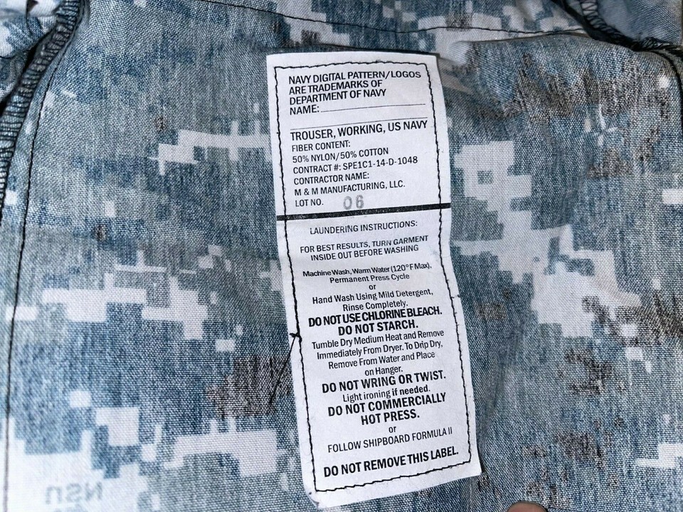 ALL PANTS ARE MADE BY A UNITED STATES CONTRACTOR AUTHORIZED BY THE DEPARTMENT OF THE NAVY