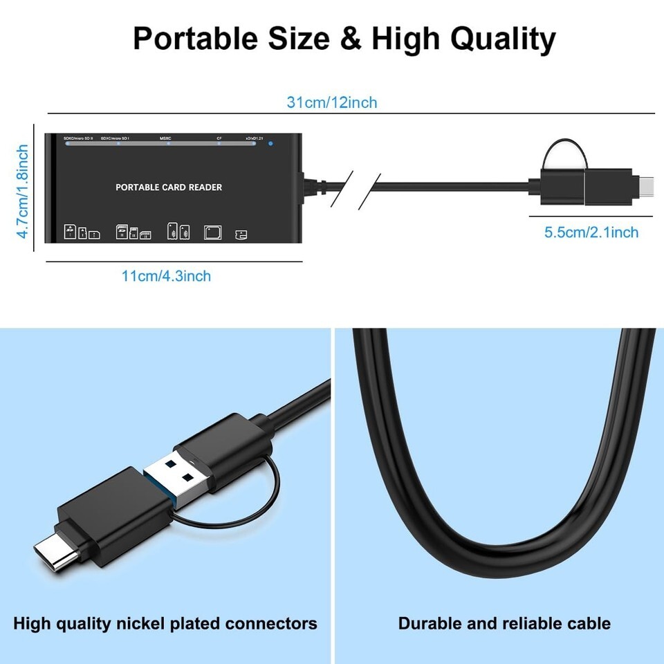 USB 3.0 USB-C Multi Memory Card Reader 7 in 2 SD/TF/CF/Micro SD/XD/MS Adapter