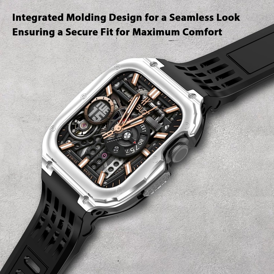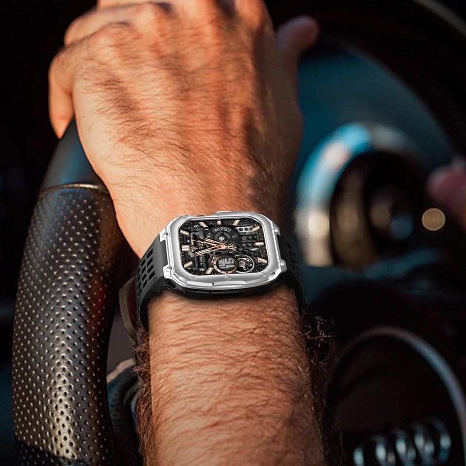 All-around Protection The outer shell of this 44/45mm rugged band is made of high-quality 316L solid stainless steel, ensuring durability and resistance to wear. The inner layer of the case features a soft and sturdy TPU bumper that provides shock resistance and protection against falls. By wearing our sturdy Apple Watch strap, your iWatch will be fully protected from scratches and impacts.