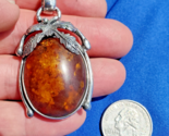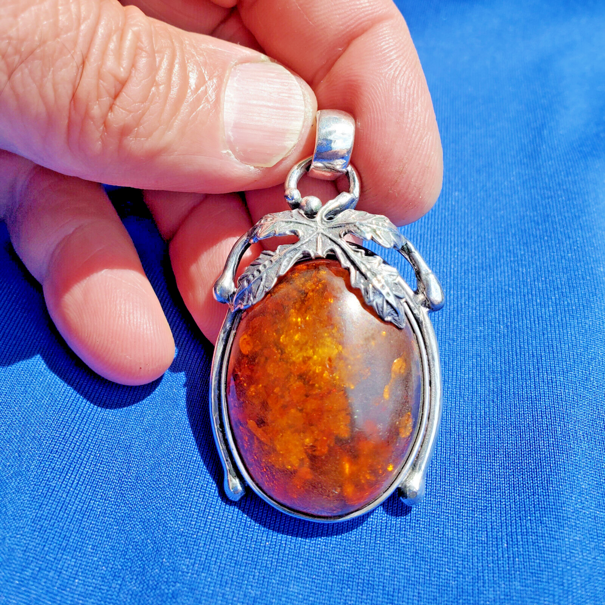 VERY LARGE 18 Grams Authentic Baltic Amber Handmade 925 Sterling Silver Pendant.