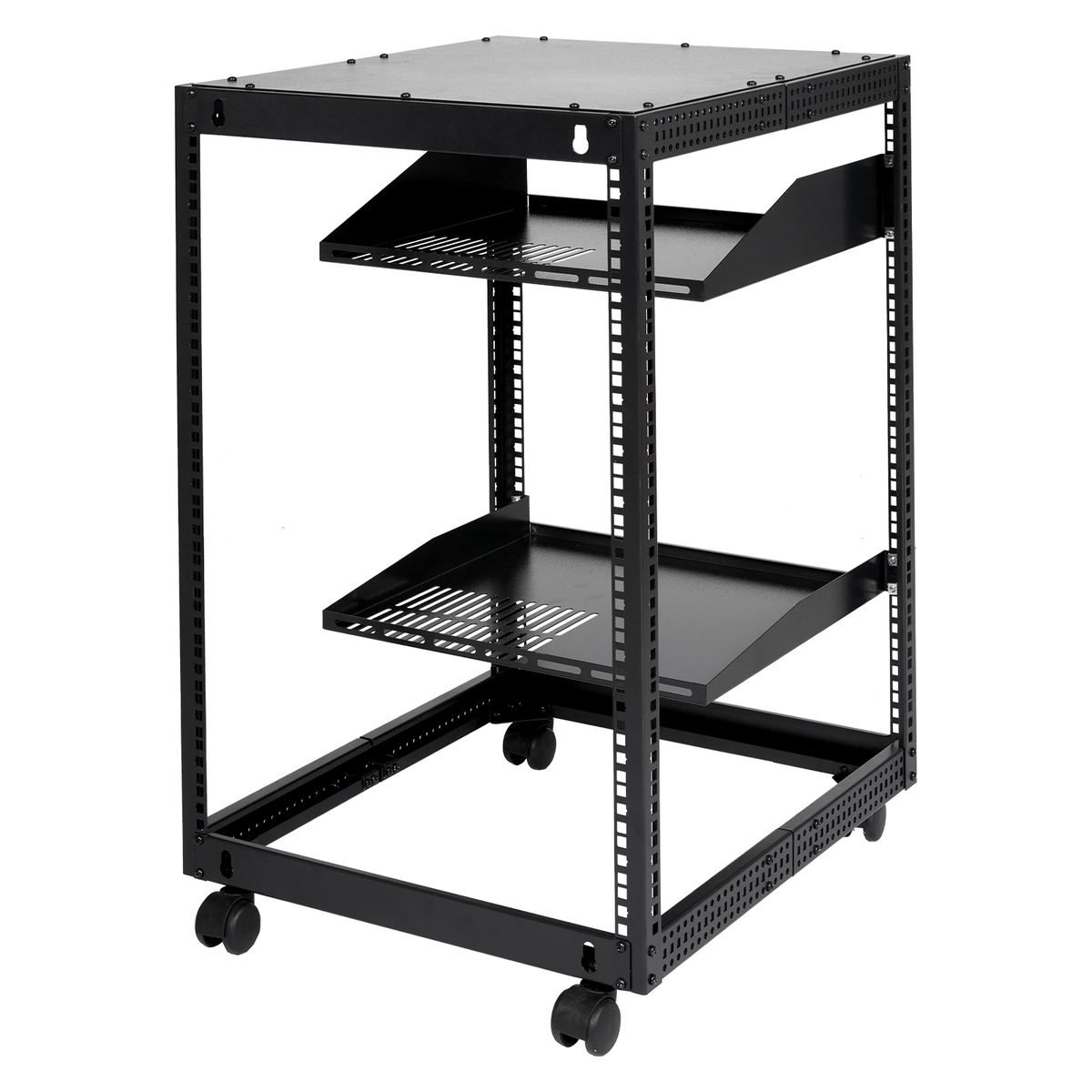 User-friendly Design: Ergonomic design makes the open frame av rack easier to use. The additional top panel is able to place other items with more available space. Roller design moves anywhere and anytime, is convenient, and is more energy-saving.