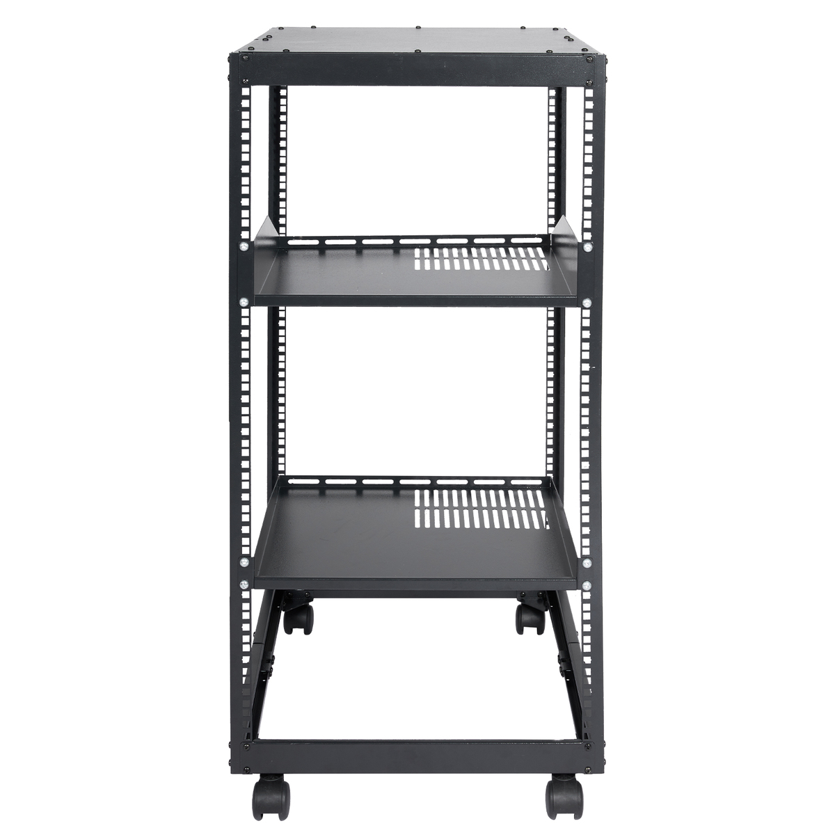 User-friendly Design: Ergonomic design makes the open frame av rack easier to use. The additional top panel is able to place other items with more available space. Roller design moves anywhere and anytime, is convenient, and is more energy-saving.