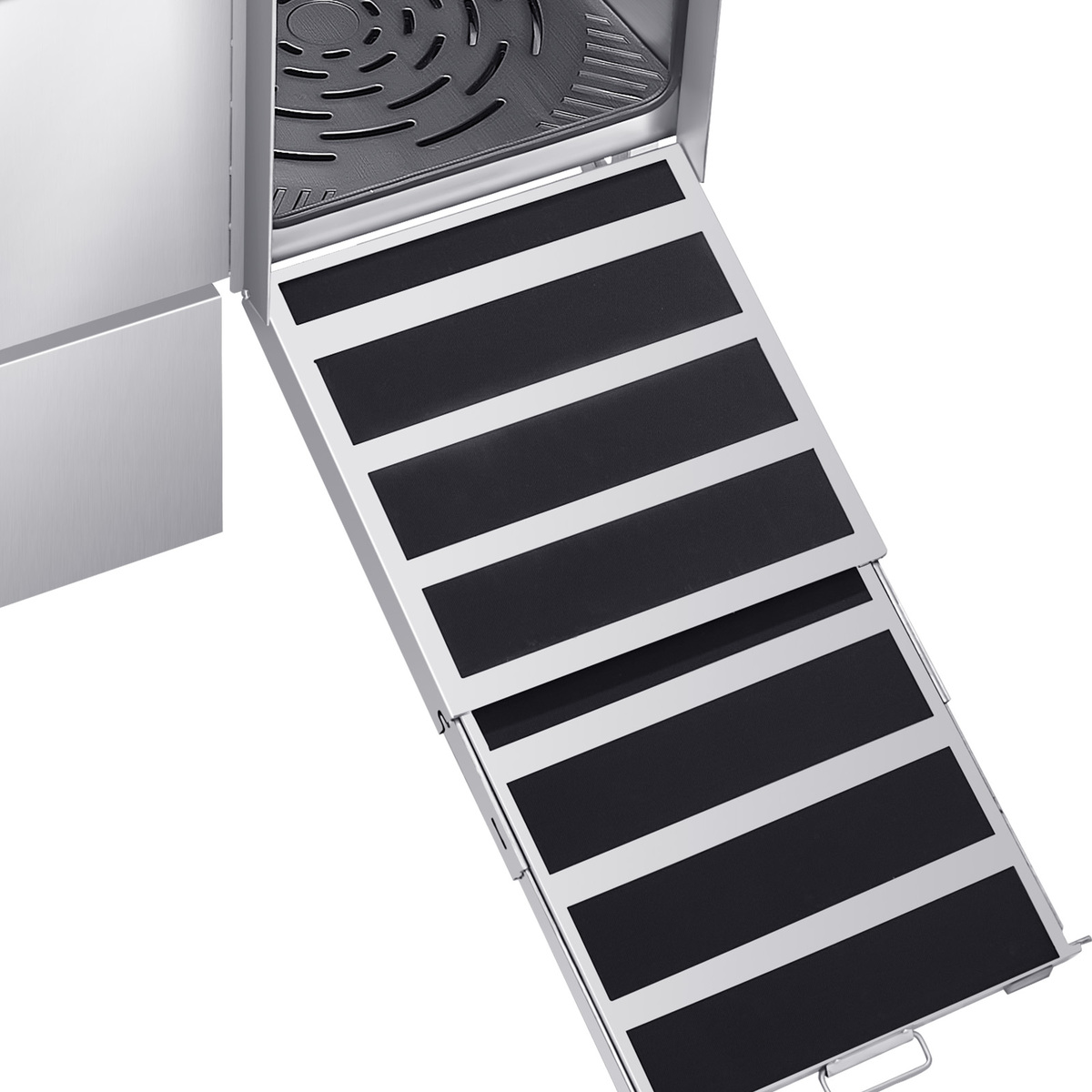Foldable and Space-Saving: The integrated foldable ramp door can be shortened and folded upwards to act as a door panel. The upgraded sealing system and anti-slip ramp ensure pets can enter and exit securely without slipping. The drainage kit keeps smells at bay, ensuring no water accumulation or leaks during bath time