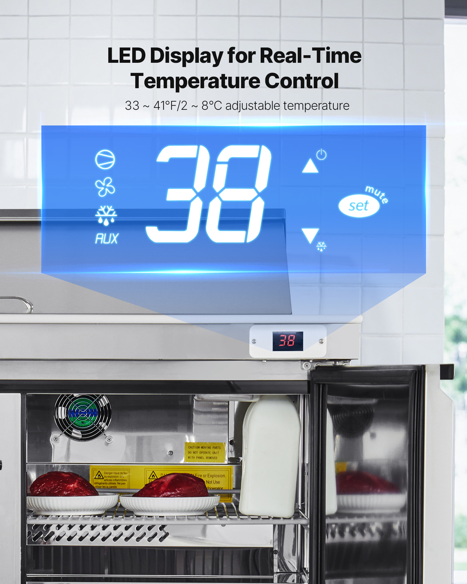 Electronic Temperature Control: With a digital control screen, this sandwich table maintains temperatures at 33~41?, so vegetables, sauces, fruits, and meats stay fresh