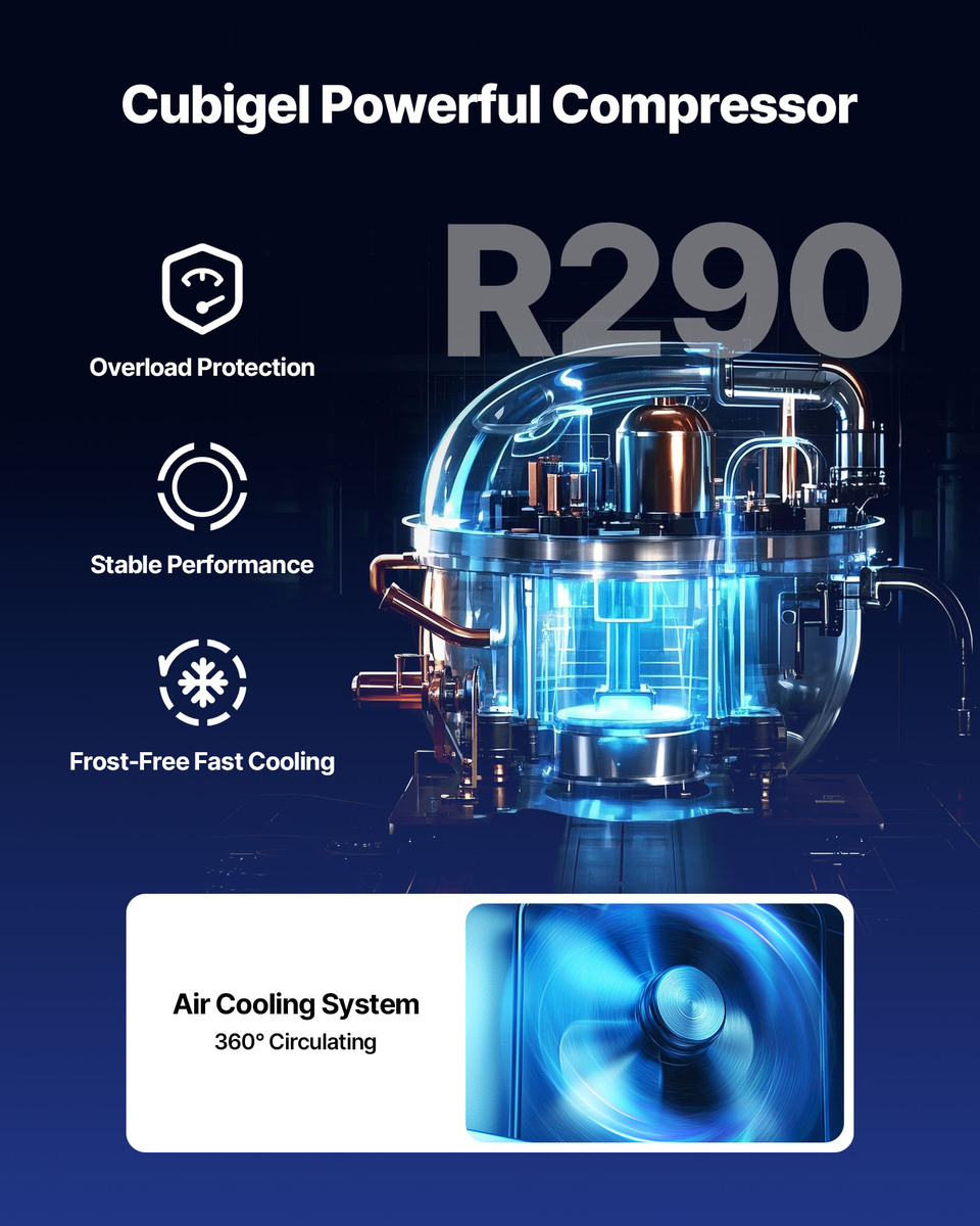 Quick Efficient Cooling: With a Cubigle compressor and finned copper tubes, this pizza prep table refrigerator ensures consistent, even cooling to keep food fresh longer. Complies with UL, CSA tested standards