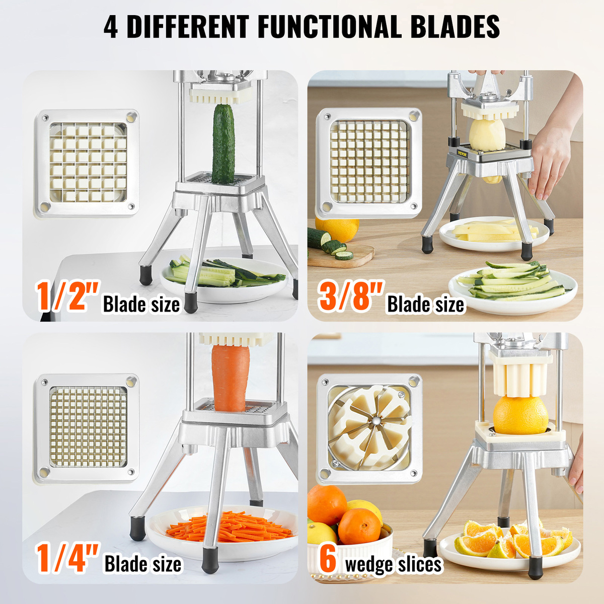 - VEVOR Commercial French Fry Cutter with 4 Replacement Blades, 1/4" 3/8 " 1/2"