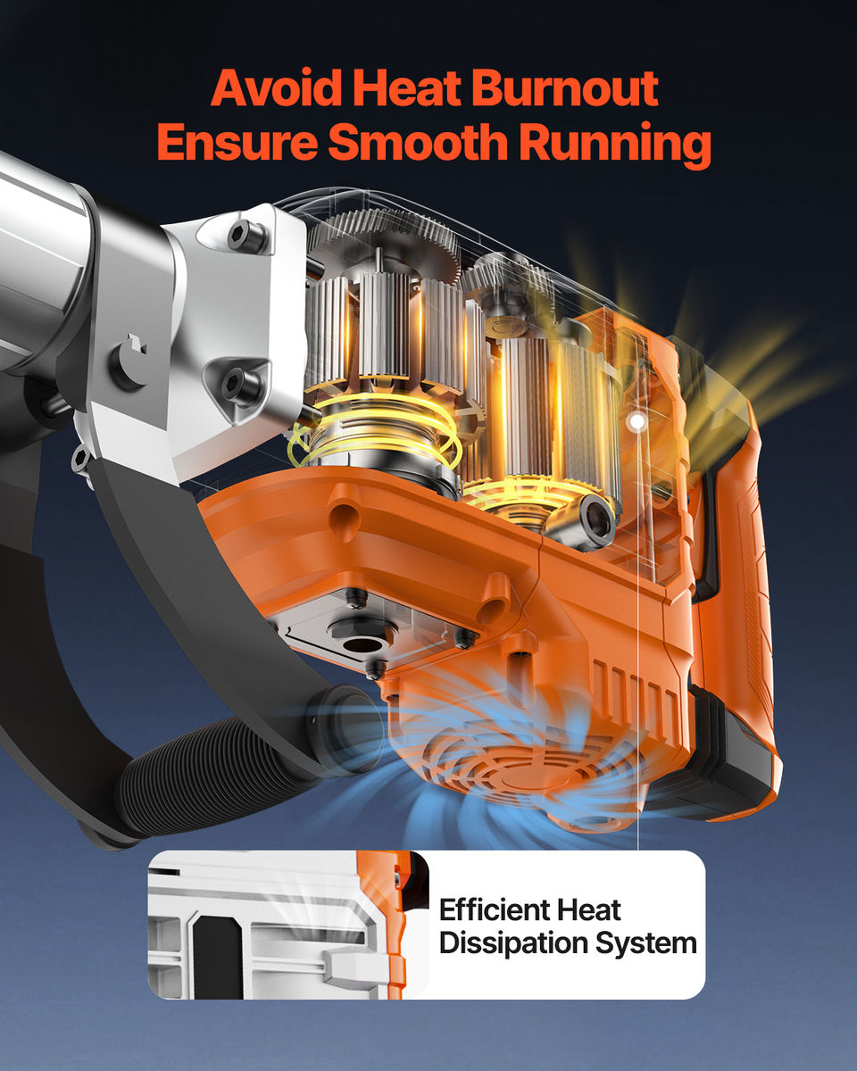 Stays Cool During Intense Work: The efficient cooling system effectively cools the motor to improve the concrete breaker's life. The engine will be at low temperatures even after a long working time.