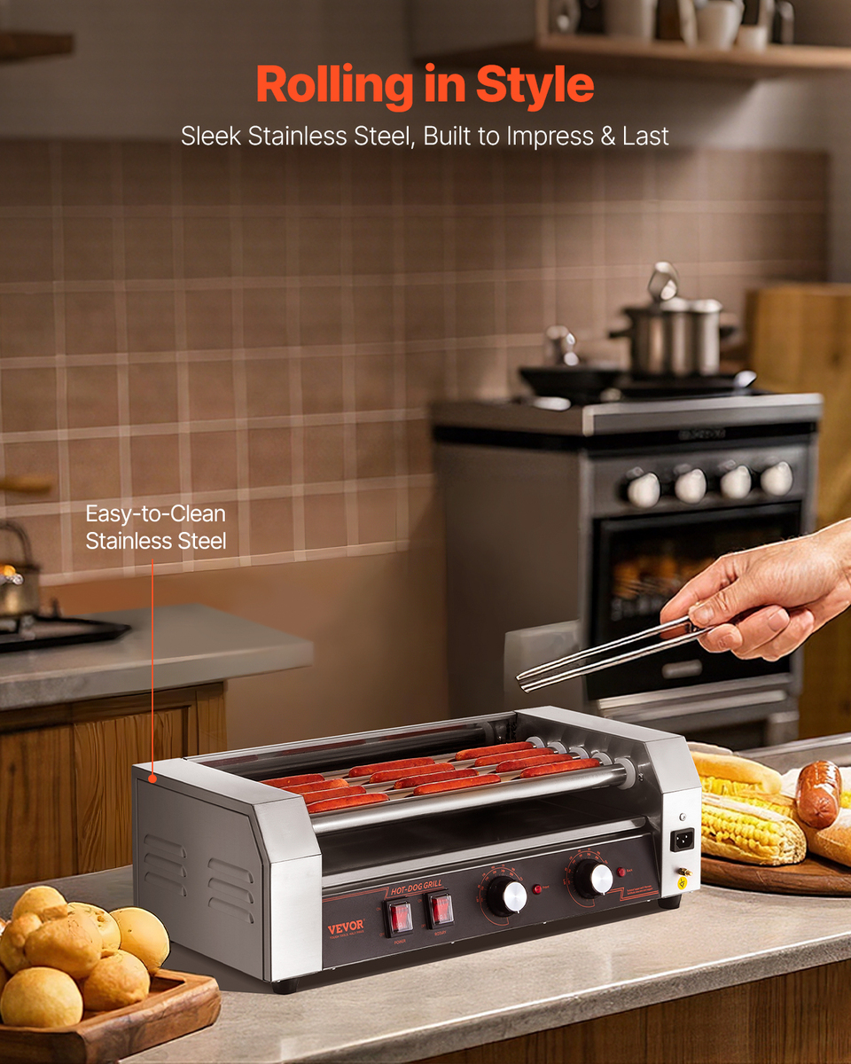 - VEVOR Hot Dog Roller, 12 Hot Dog 5 Rollers, 750 W Stainless Steel Grill Cooker